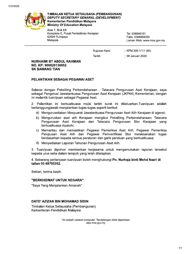 Contoh Surat Lantikan Pegawai Pengurusan Aset Dan Stor Oleh Ketua Jabatan Pdf